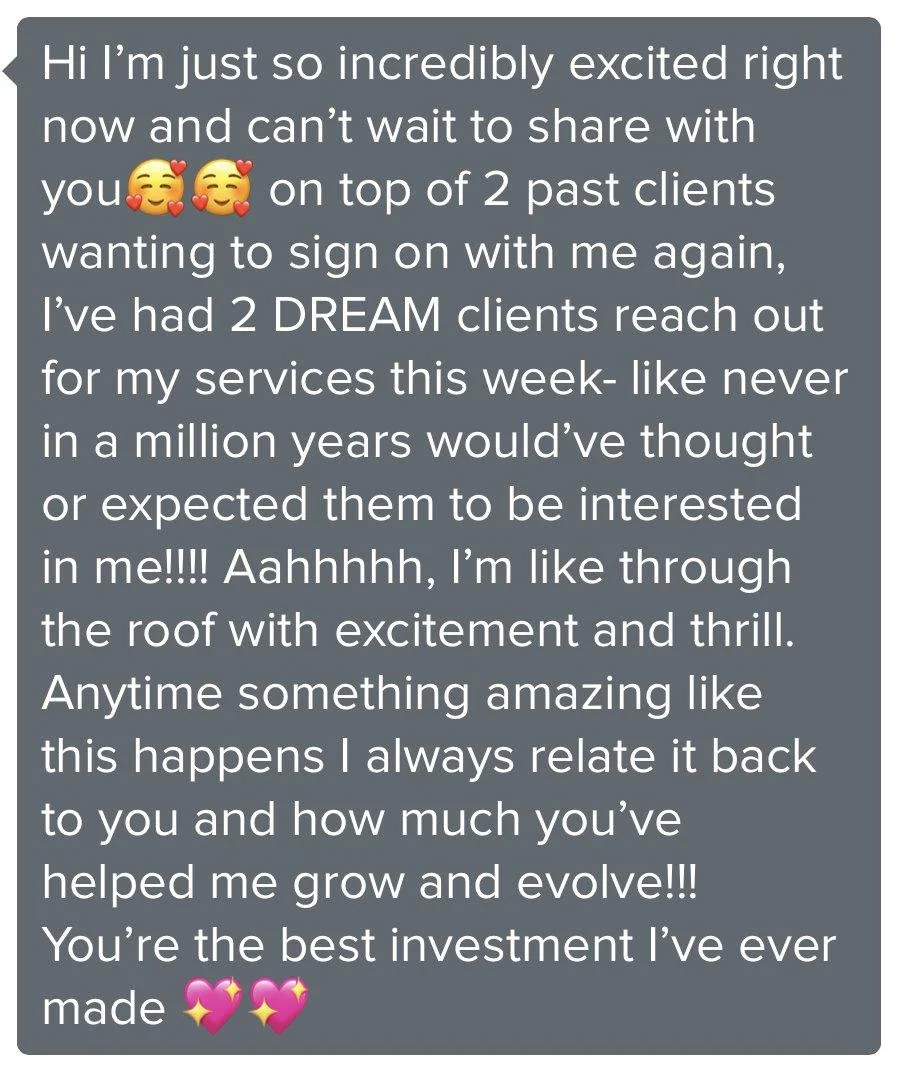 Turns out you don't need to niche down like crazy, launch another free offering, or create a different offer to make $5K months. You just need to learn how to shift your messaging and marketing to call in those DREAMY af clients. When you lay the foundations in your subconscious and create your reality in your mind... marketing and messaging is your next step to increased sales.